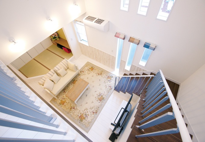 抜群の明るさと開放感 吹き抜けリビングのある住まい イワクラホーム